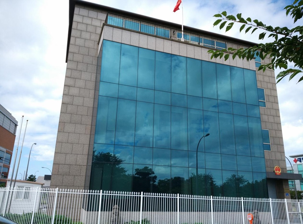 然后将翻译过的法律文件交中国驻济州总领事馆公证。济州领事馆区的建筑外观基本一致,我们找了一会儿,终于看到了熟悉的五星红旗和醒目的国徽,这是我们的领事馆(下图)。真的是入乡随俗,领事馆门口摆放着济州的两个门神石头公公(多尔哈鲁邦)