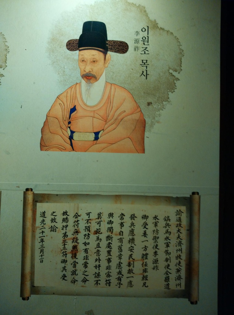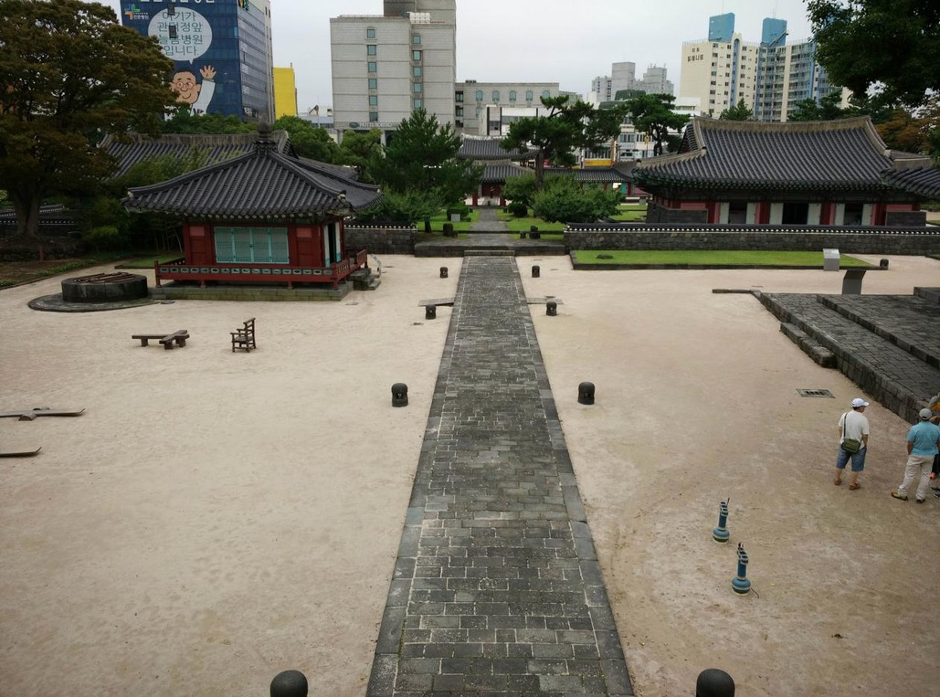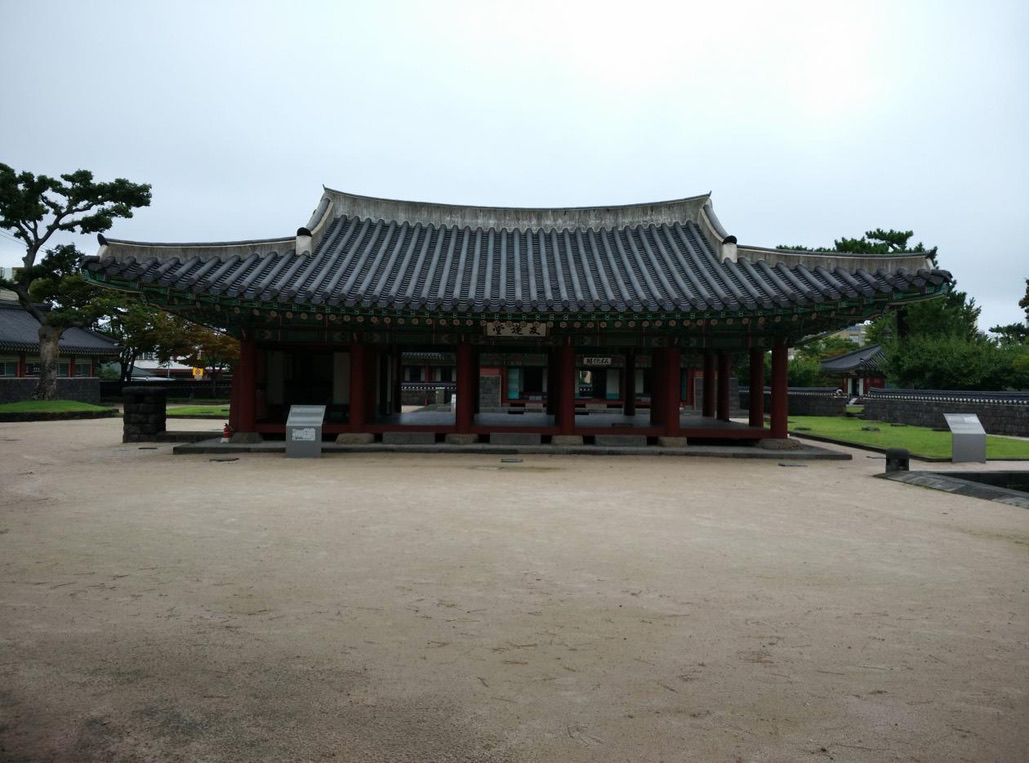 因为无公事,就辞了翻译,四处走走,地理不熟,误打误撞到了耽罗布政司(下图)。济州岛古称耽罗国,曾是独立小王国,是百济、新罗、高丽、朝鲜王朝的一部分,1274年至1294年,济州为元朝直接管辖。耽罗布政司即耽罗国的行署,后改为济州牧官衙,二战时除观德亭外,其余全部遭日本人毁坏,后于1999年开始重建。官衙的大门是镇海楼。