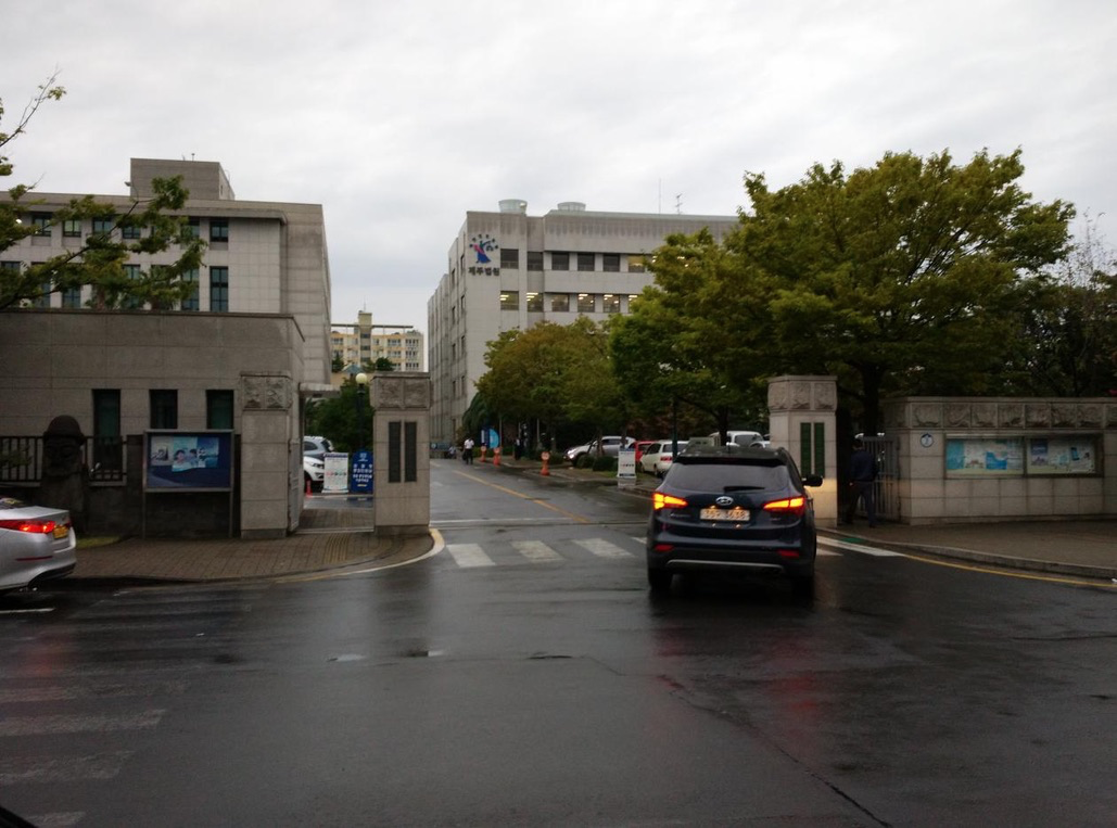 休息片刻,到济州地方法院(下图)。来韩前了解到,韩国的法律最初主要受到中国法律的巨大影响,它从高丽时代就开始继承模仿中国的法律。1910年,日本吞并韩国后,先后颁布了一系列法令,韩国法律的现代化从此开始。1945年,韩国摆脱日本殖民统治后又被美军进驻并实行军事统治,直到1948年韩国独立,因此韩国法律又受到上述两国的影响。独立后的韩国致力于消除其他国家的影响,制定适合本国发展的法律制度,从而形成了自己特有的法律文化。