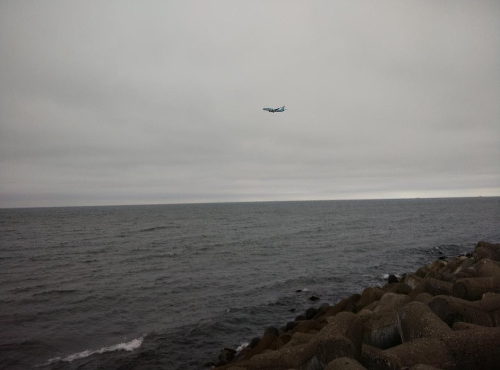 等待的时间真的难熬,闲了就在海堤上看起落的飞机(下图)